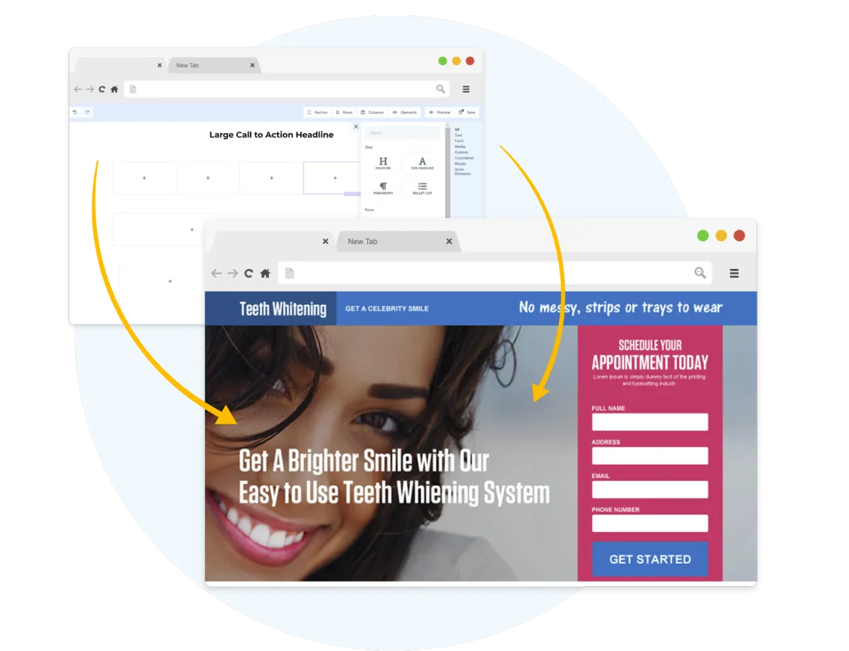 Create gorgeous, high-converting landing pages on your domain with Business Expedited’s drag-and-drop builder. Whip up an on-brand showstopper in a matter of hours or get started with a pre-made template in seconds. You can also get fancy by adding custom scripts and integrations.